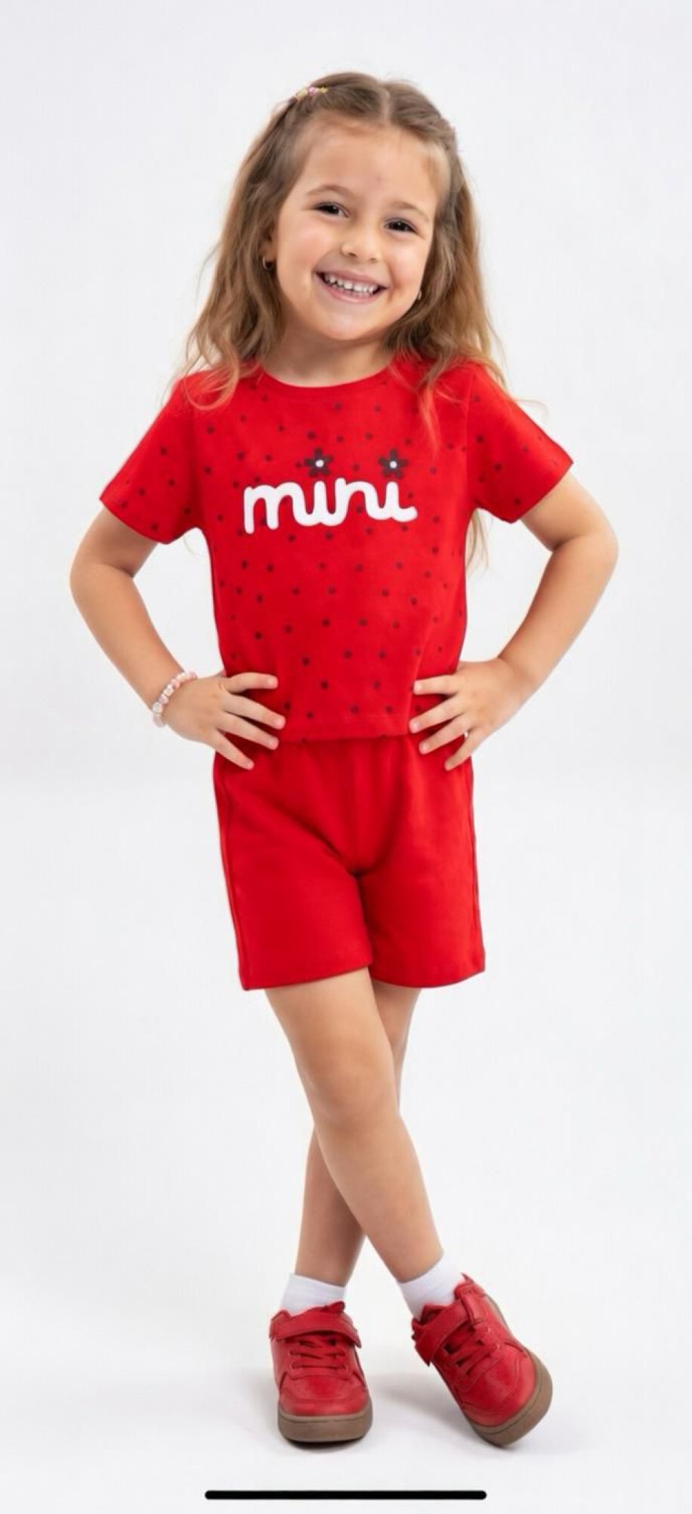 MİNİ YAZAN PUANTİYELİ ŞORTLU TAKIM Kırmızı
