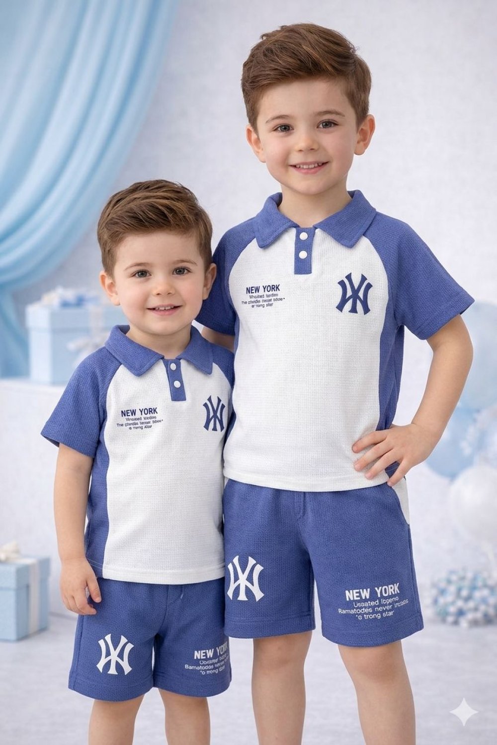 ✨ NEW YORK YAZILI YAKALI DÜĞMELİ ŞORTLU TAKIM ✨ ? 2-3 / 3-4 / 4-5 / 5-6 yaş ? Üst: Yakalı ve düğmeli, “New York” baskılı şık tasarım ? Alt: Rahat şort ile günlük kullanıma uygun ? Hem konforlu hem tarz, minikler için ideal kombin ? Fiyat: 500 TL ? Hızlı gönderim ?️ Miniklerin şıklığını ve rahatlığını bir arada sunan mükemmel bir takım! ?