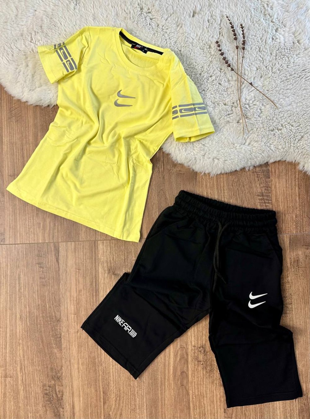 ORTASI İKİLİ NİKE KOLLARI BASKILI KAPRİSİ NİKE AİR BASKILI TAKIM Sarı
