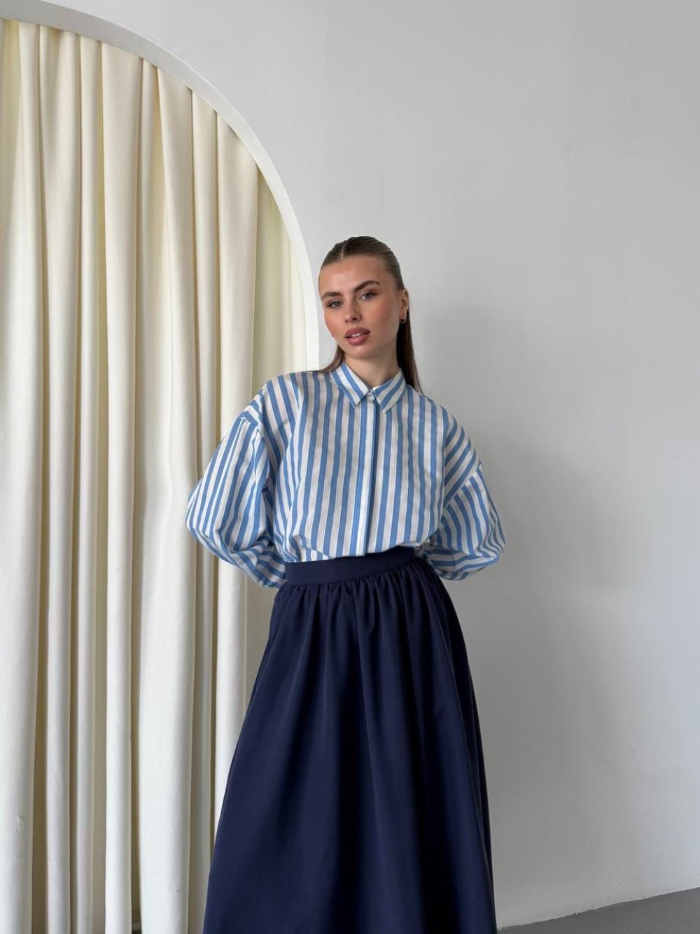 OVERSIZE ÇİZGİLİ GÖMLEK Mavi
