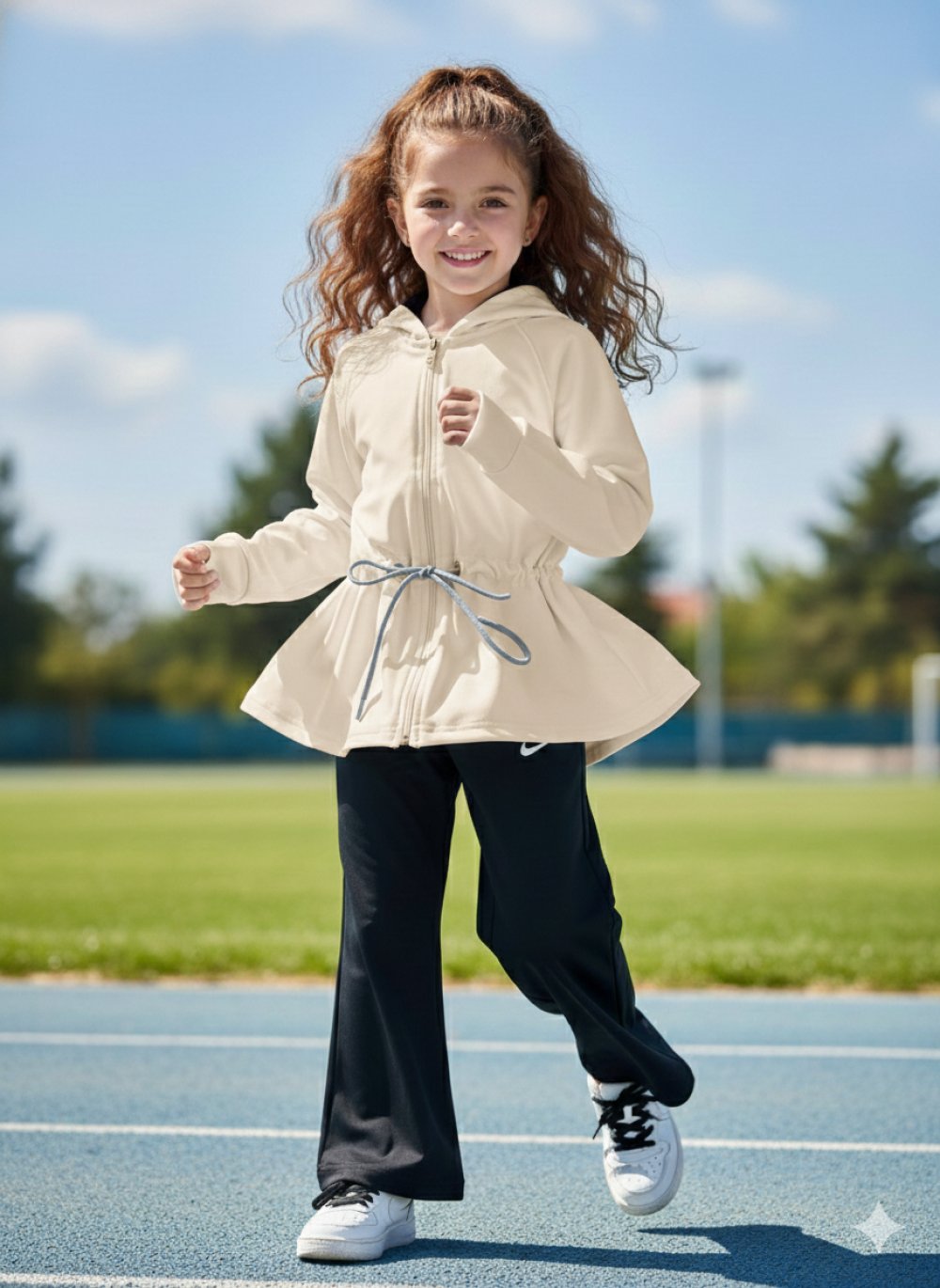 OYSHO KUMAŞ NİKE KORDONLU KAPŞONLU KIZ EŞOFMAN TAKIMI Bej