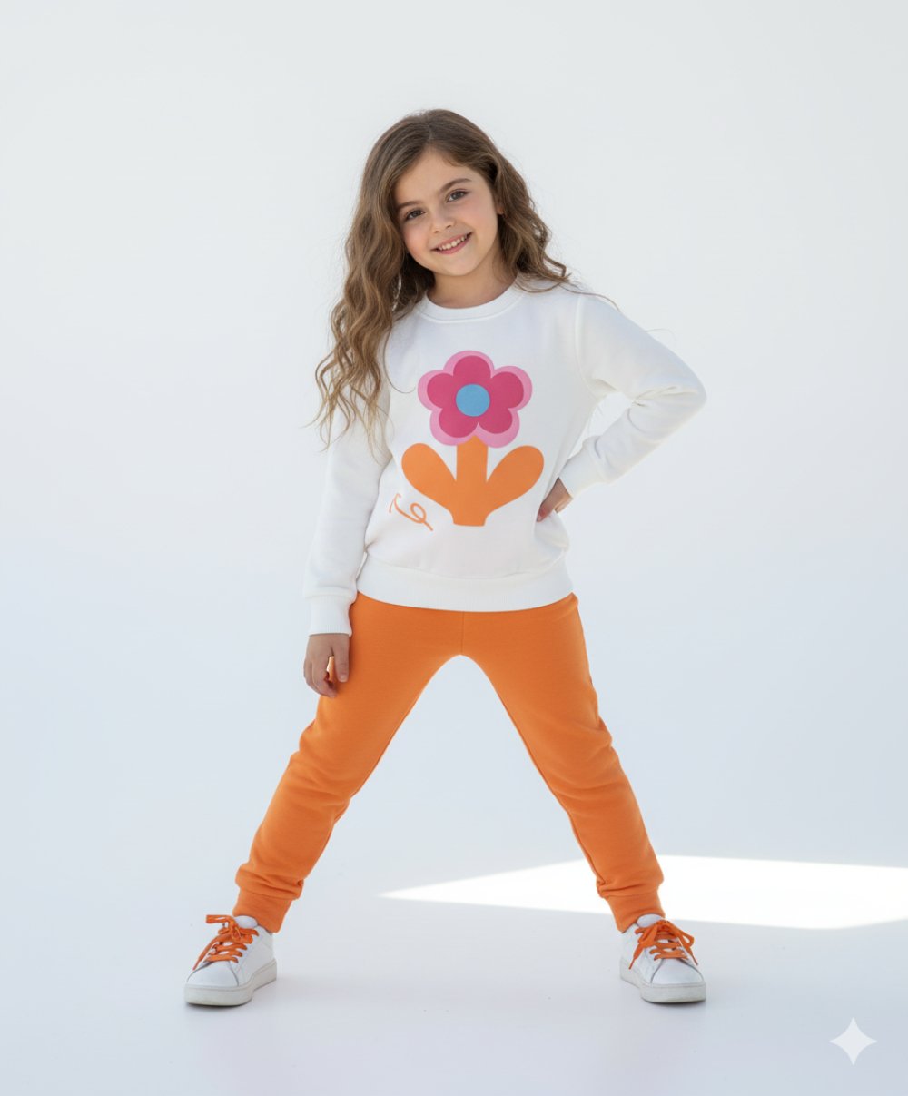 PAPATYA OK İŞARETLİ DESENLİ KIZ TARZ TAKIM Turuncu
