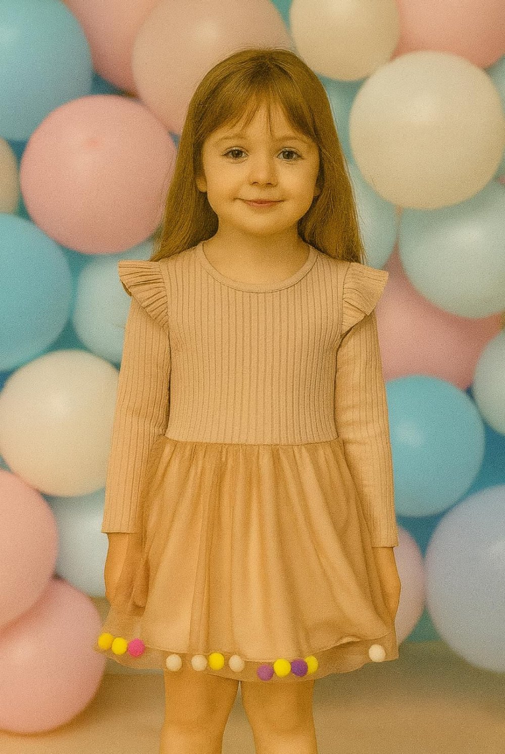 PONPNLU DÜZ TÜL KIZ ELBİSE Bej