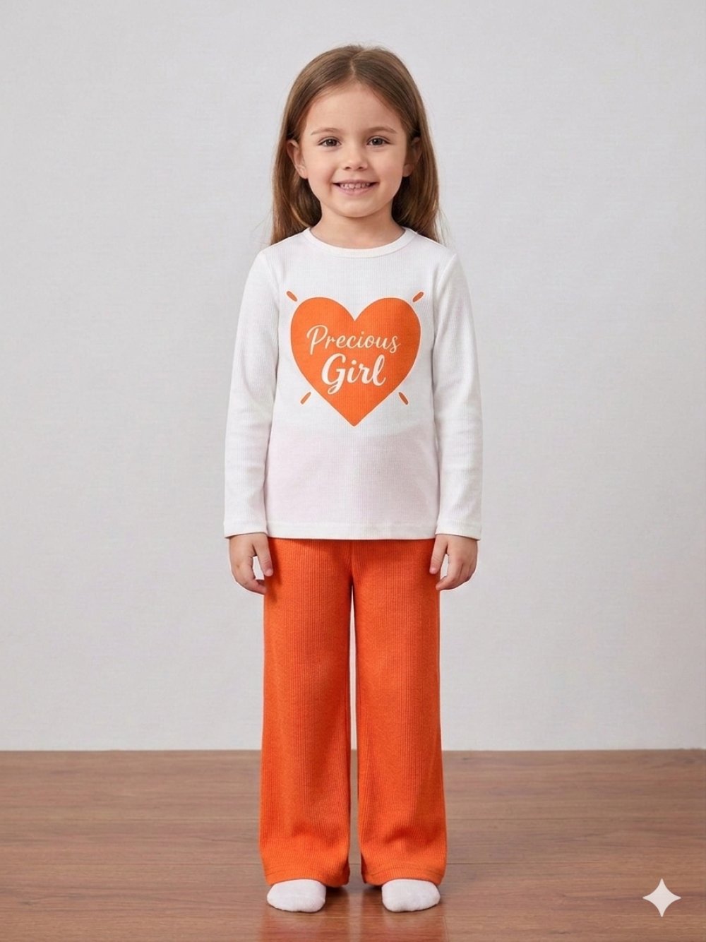 PRECİOUS GİRL KALPLİ ALT KAŞKORSE KIZ TAKIM Turuncu