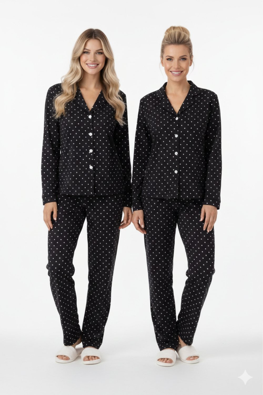 PUANLI SÜET ANNE PİJAMA TAKIMI Siyah