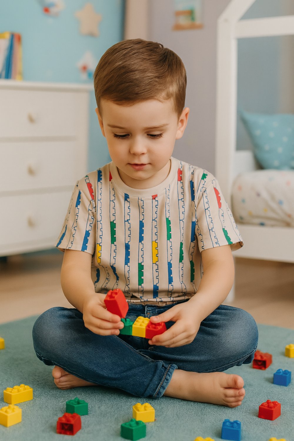 RENKLİ YAPBOZ DESENLİ TİŞÖRT Krem