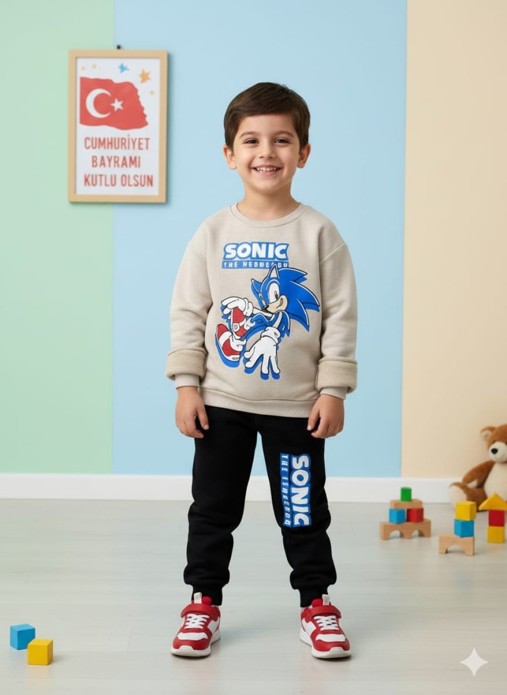 SONİC BASKILI ERKEK TAKIM Bej