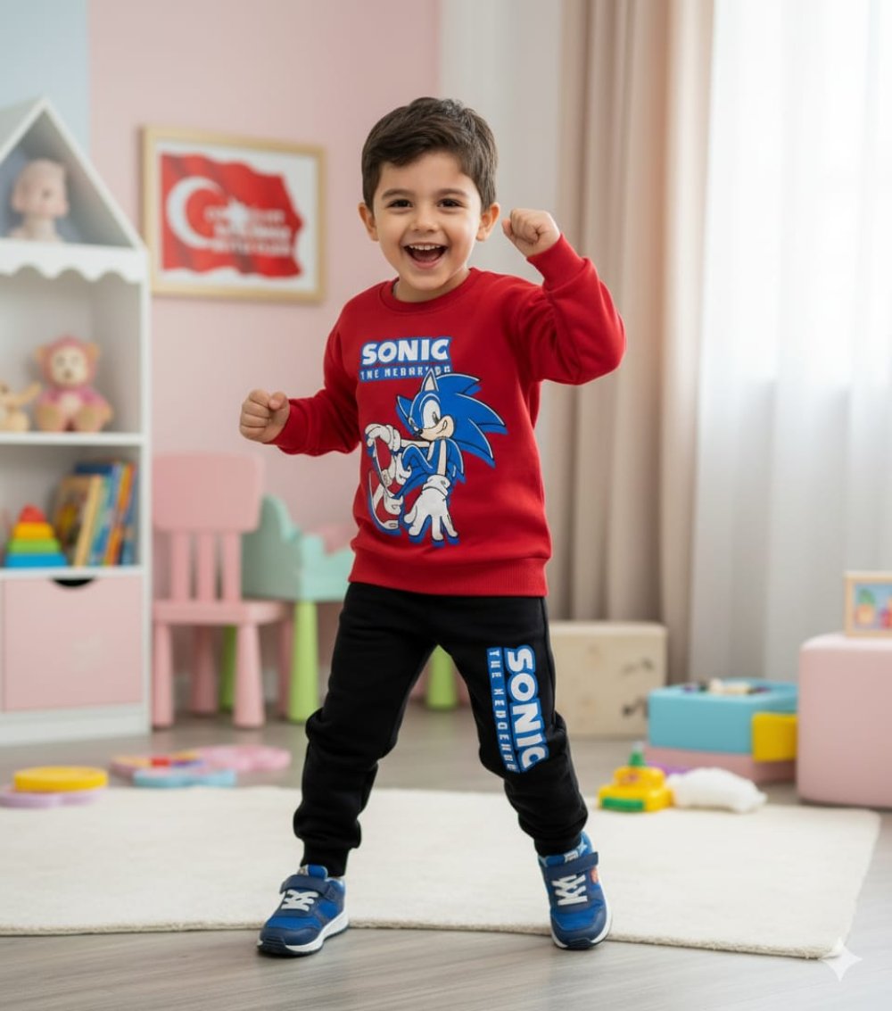 SONİC BASKILI ERKEK TAKIM Kırmızı