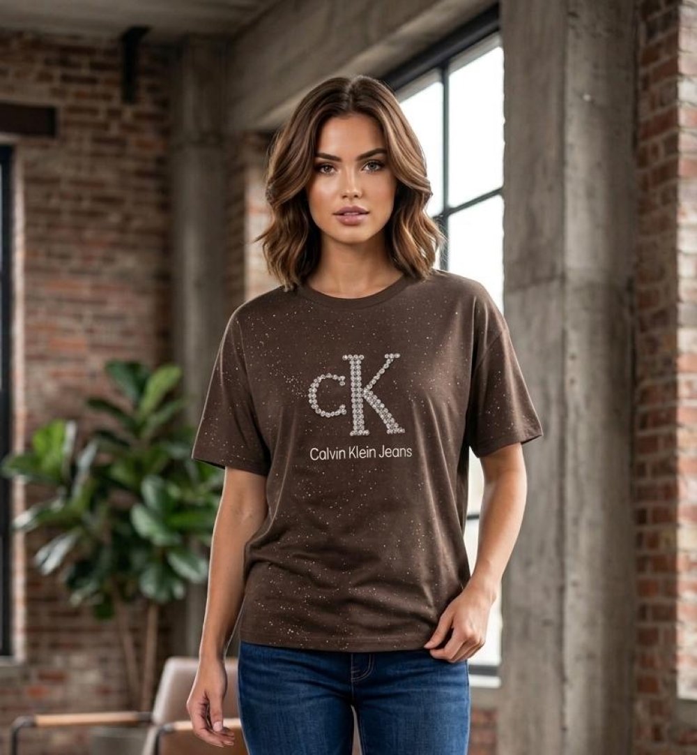 TAŞLI CK YAZILI TEK TŞÖRT Kahverengi