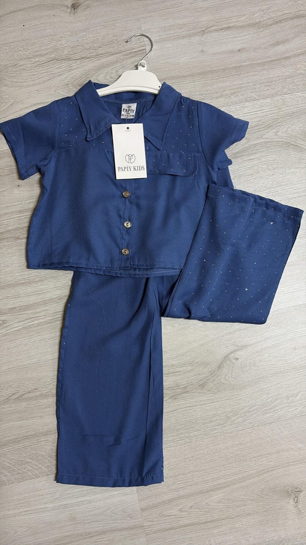 TAŞLI DÜĞMELİ KIZ TAKIM Mavi