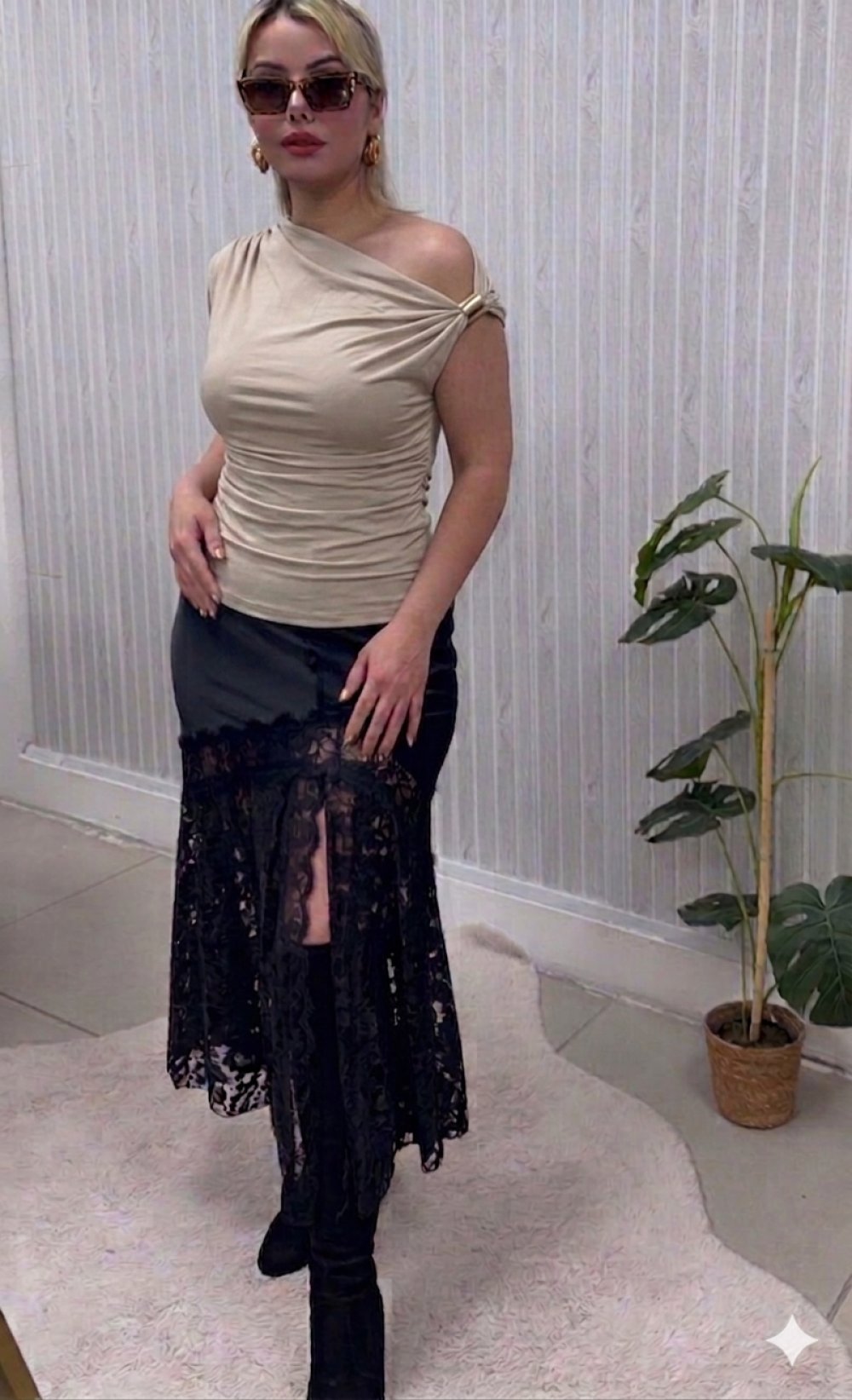 TEK OMZU AÇIK GOLD TOKALI BLUZ Bej