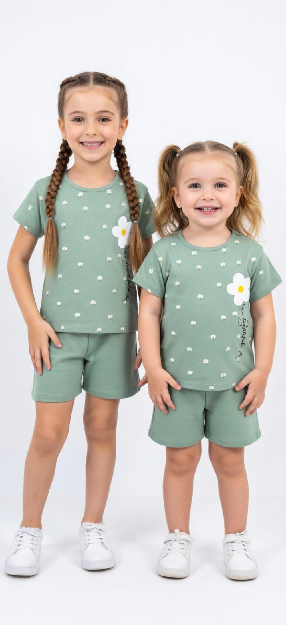 ÜST TEK VE HER YERİ PAPATYALI YAZILI ŞORTLU TAKIM Yeşil