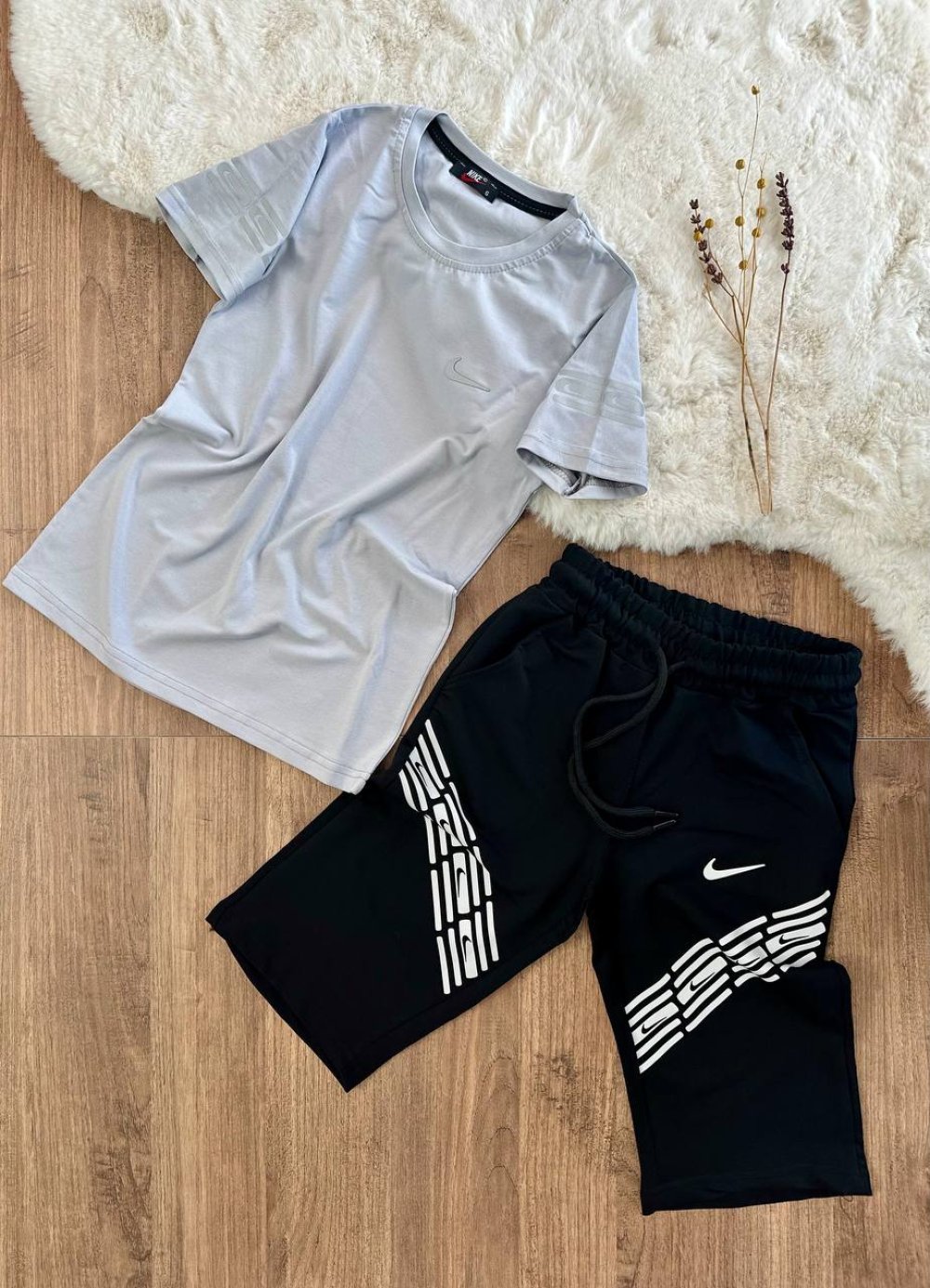 YAN TARAFI TEK NİKE KOLLARI BASKILI KAPRİ TAKIM Gri