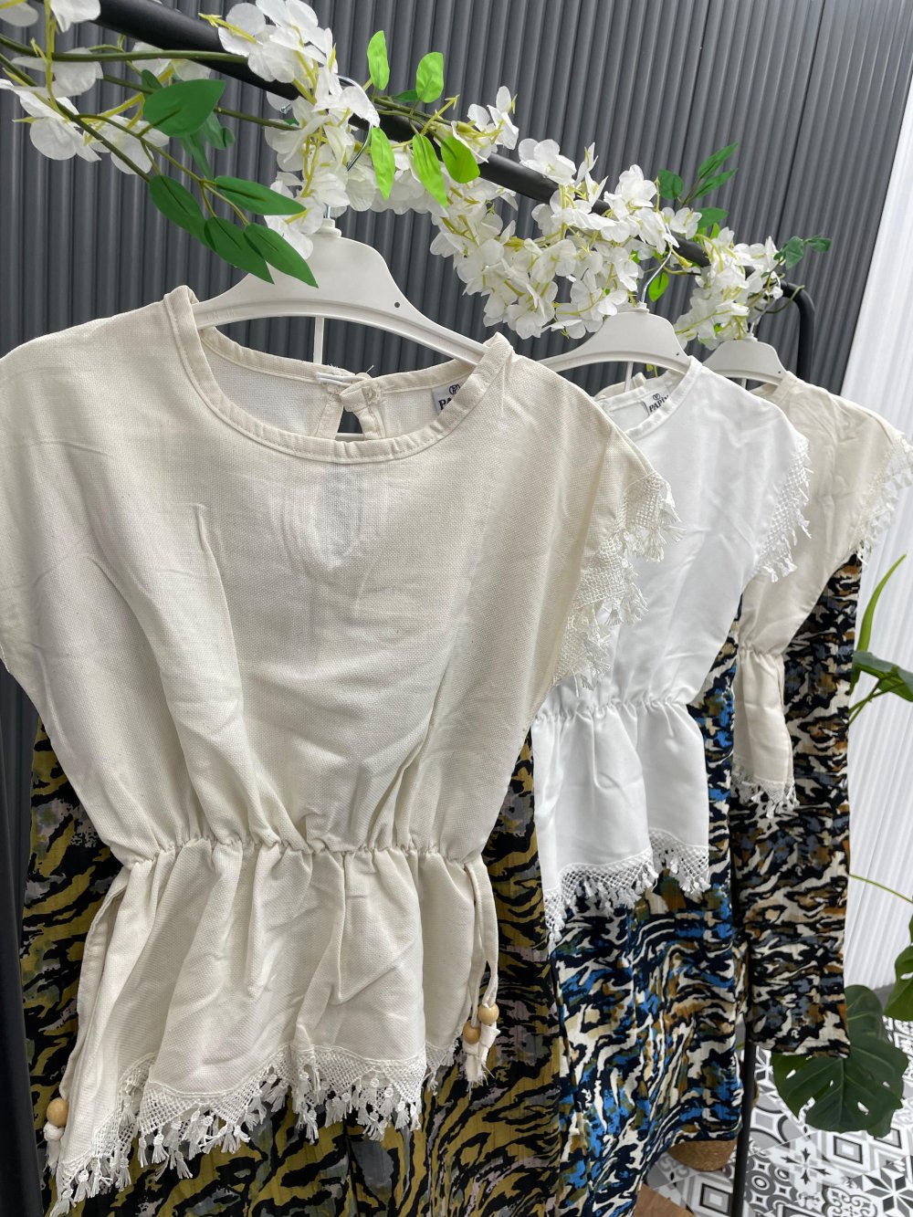 YAZLIK KOL UCU DANTELLİ BEL BÜZGÜLÜ PANTOLON KARIŞIK DESEN KIZ TAKIM Yeşil