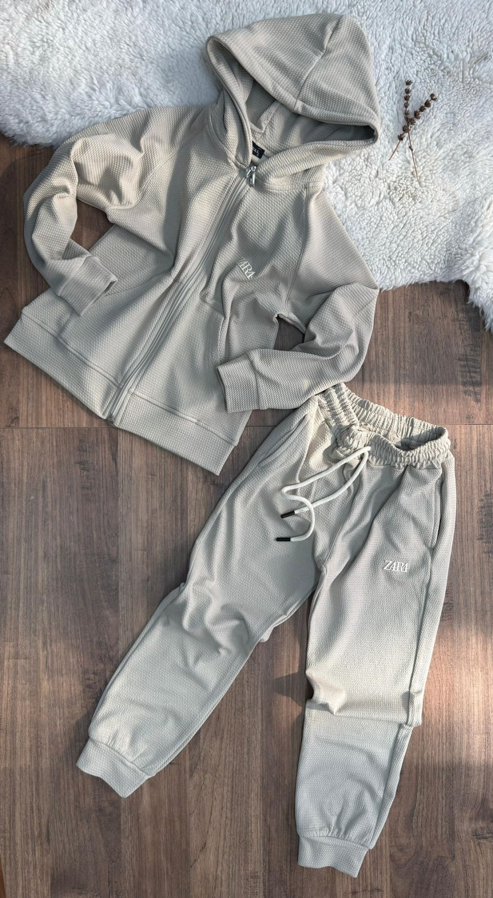 YENİ ZAR4 KAPŞONLU TAM FERMUARLI EŞOFMAN TAKIMI Krem