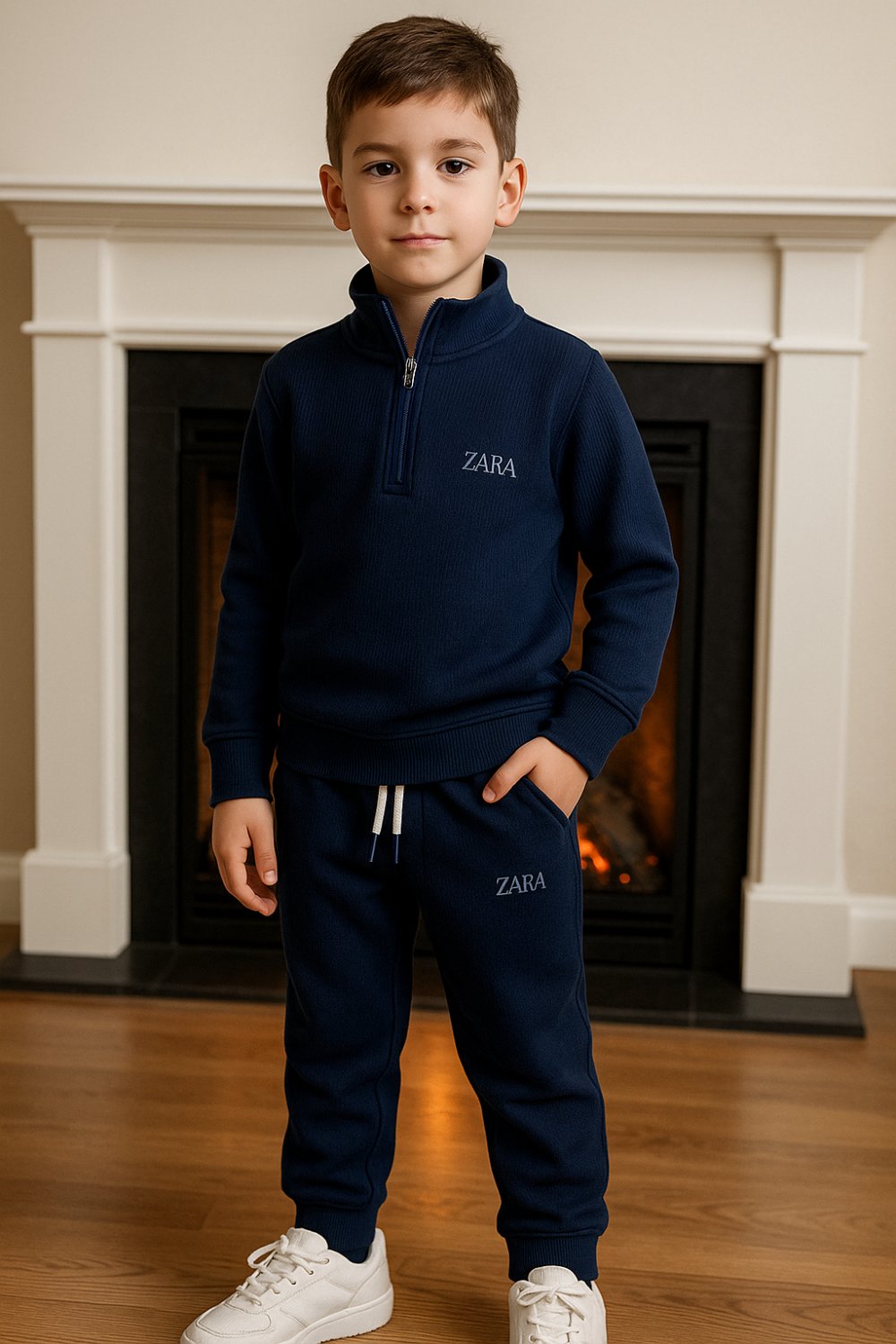 ZARA YARIM FERMUARLI ÇAKIL TAŞLI KUMAŞ UNİSEX TAKIM Lacivert